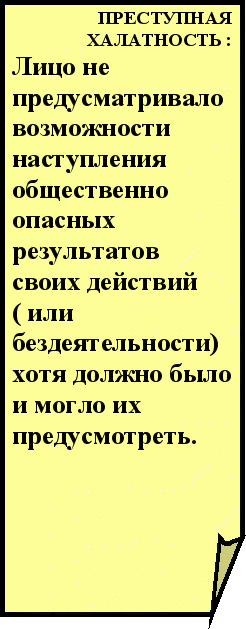 Особо указываем на последнее, так как оно прямо ведёт к одной из форм вины - преступные халатность или самоуверенность.