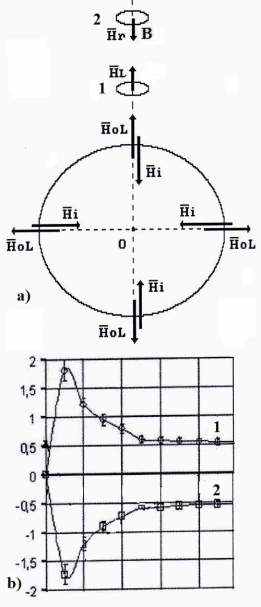 ротационного поля у поверхности Земли и взаимодействия с ним левовращающегося и правовращающегося гироскопов 1 и 2; b) изменение веса гироскопов: левовращающегося 1 и правовращающегося 2 Изложенное провоцирует нас предположить, что у поверхности нашей планеты существует слабое левовращающееся ротационное поле. Векторы кинетических моментов