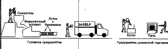 - Bruegger's имеет одну машину, производящую баранки. Это оборудование размещено на главном предприятии. Альтернативный вариант — установить такую машину в каждом магазине. Каковы преимущества каждой альтернативы?