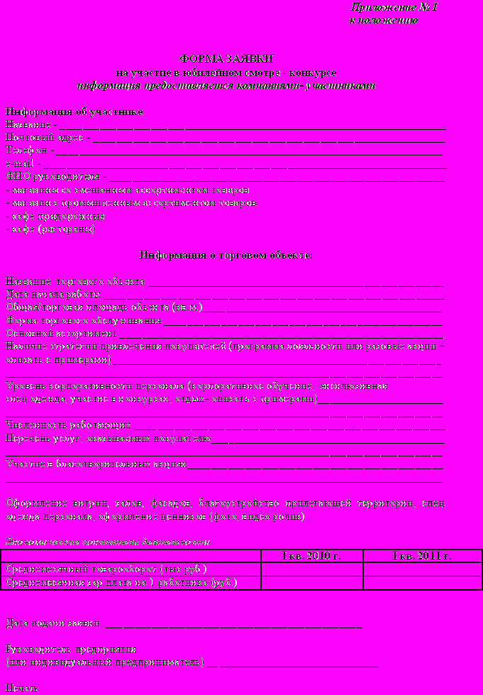 3.4.На участие в конкурсе в комиссию подается заявка по форме (Приложение №1)