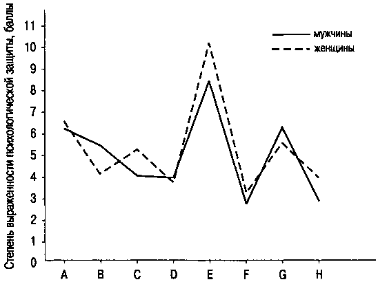 Рис. 8.1. Профиль доминирующих механизмов психологической защиты у мужчин и женщин
