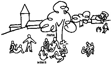 14. Теперь на этом рисунке размести несколько человек и себя. Нарисуй или обозначь крестиками. Подпиши, что это за люди.