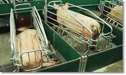 На крупных свиноводческих фермах и комплексах в станках свинарника-маточника выделено кормонавозное отделение для кормления матки; в середине другой части таких станков устроена клетка для фиксированного содержания матки во время опороса и в первый период роста поросят. Боковые отсеки этого отделения