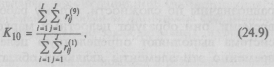 Когда все субкоэффициенты найдены, определяют суммарный коэффициент несоответствия фактической структуры принимаемых решений матричной модели (K7) по формуле следующего вида: