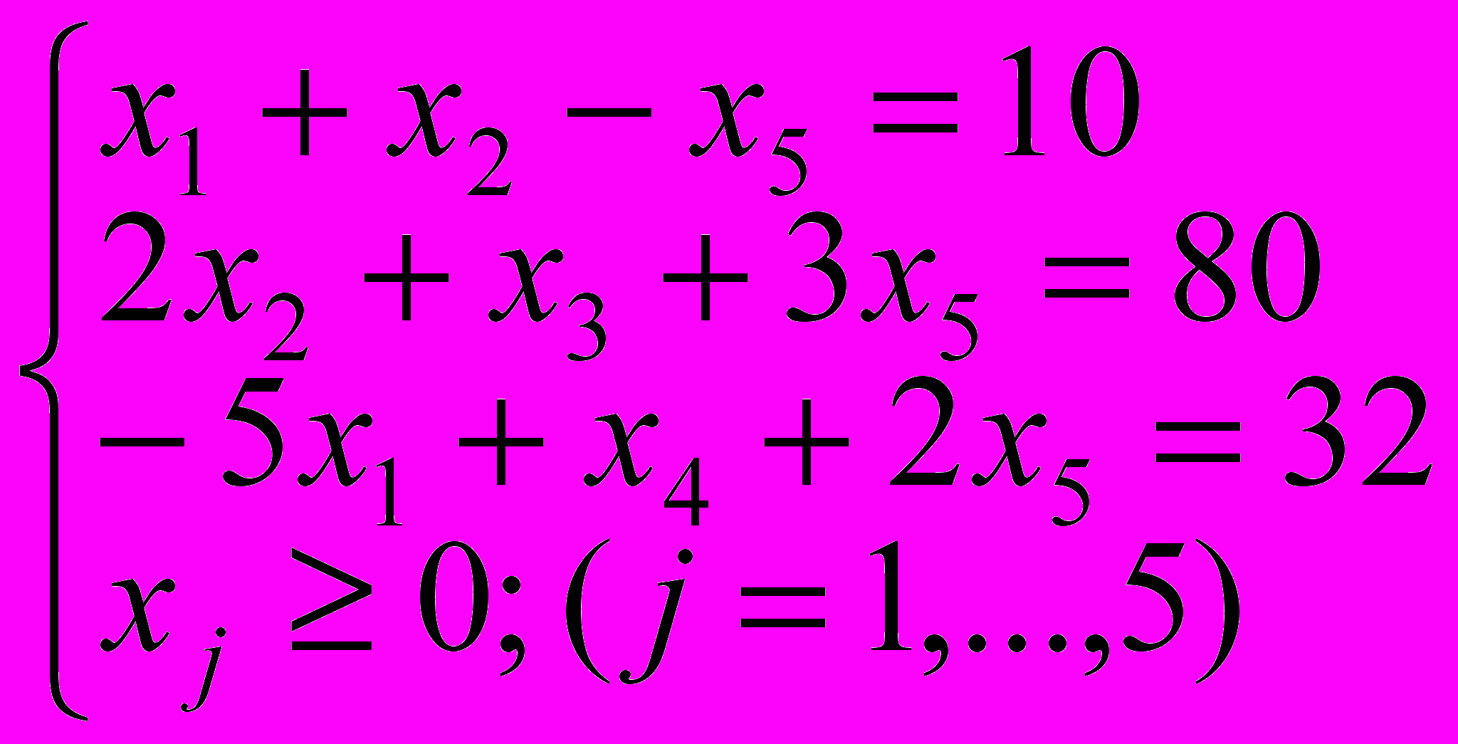 апример, в системе ограничений:базисными являются переменные х2, х3 и х4, свободными x1, x5; начальный опорный план (0, 10, 80, 32, 0)