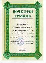 | 2005 | Почетная грамота За качественную подготовку призеров улусных олимпиад | Управления образования Аллаиховского улуса |
