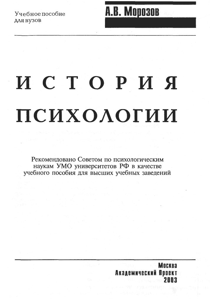 Морозов А. В. М71 История психологии: Учебное пособие для вузов