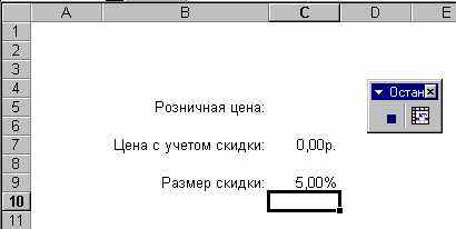 24. Для остановки записи щелкните на кнопке Остановить запись на плавающей панели инструментов, которая появилась на рабочем листе в начале записи.