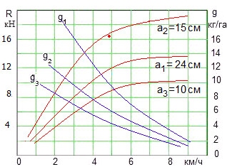 С увеличением скорости поступательного движения агрегата тяговое сопротивление бесприводного ротационного органа возрастает. В области рациональных рабочих скоростей 2,5-7,0 км/ч величина тягового сопротивления R = 16-18 кН.