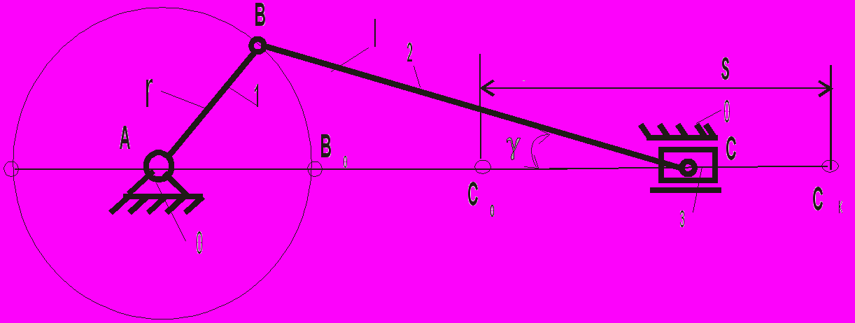 Рис. 3.3. Схема кривошипно-шатунного механизма.