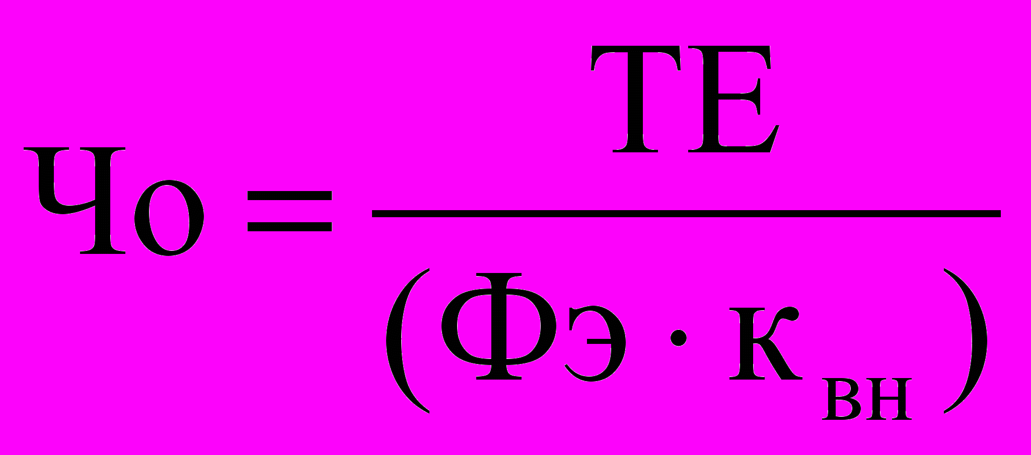 | где ТЕ - трудоемкость производственной программы; Фэ - эффективный фонд рабочего времени работника за период; квн - коэффициент выполнения норм (выработка); м - количество рабочих мест; с - количество рабочих смен; Ноб - норма обслуживания оборудования; кня - коэффициент неявки на работу по объективным причинам; Qр - объем планируемых работ; Нуп - норма управления; Чсс - среднесписочная численность работников за период. | |||||||