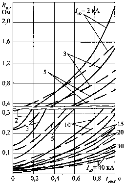 5.10.3. Эффект теплового спада тока трехфазного КЗ в проводнике следует учитывать в тех случаях, когда активное сопротивление проводника к моменту КЗ, Rн, составляет не менее 20 % от суммарного индуктивного сопротивления цепи КЗ.