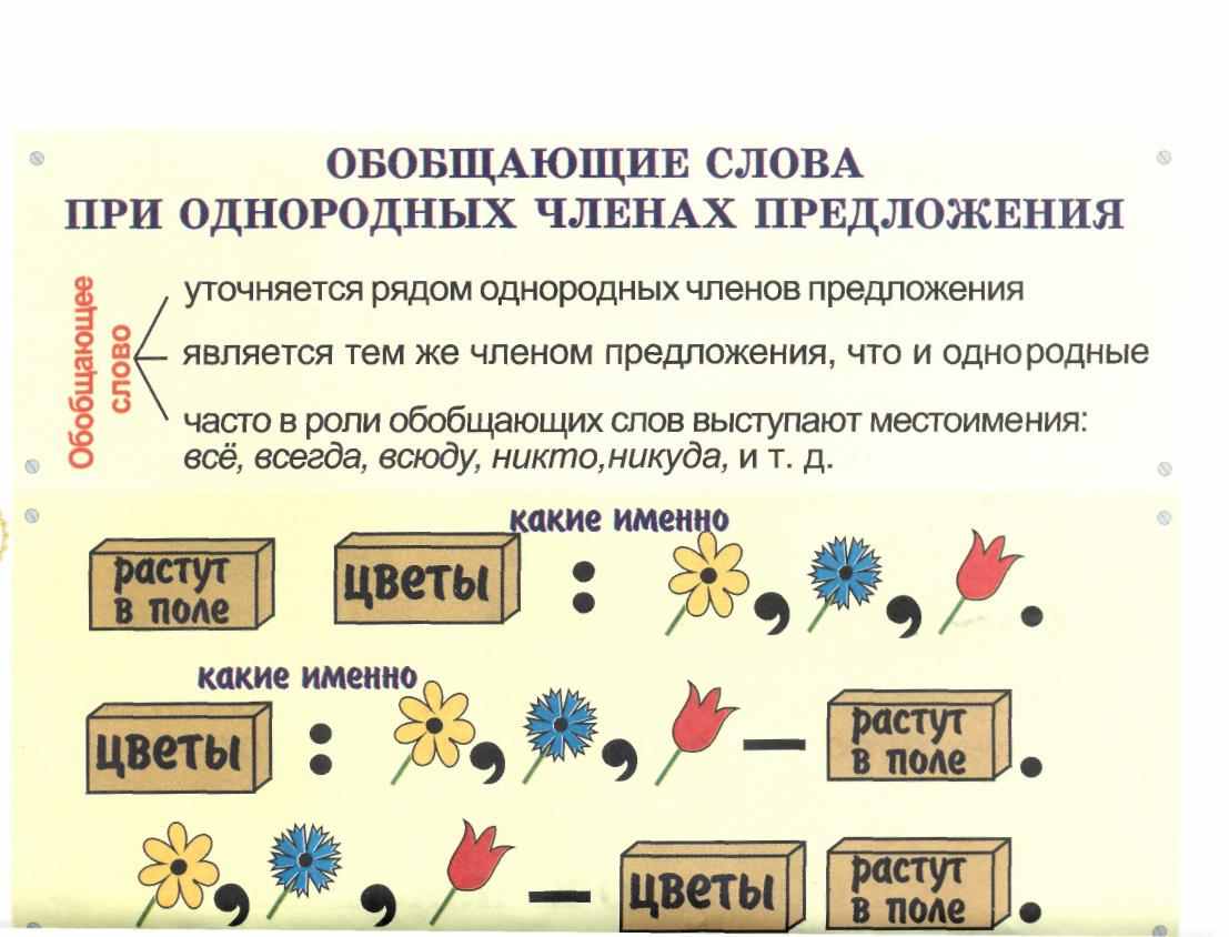 Примечание. После обобщающих слов перед однородными членами в книжной речи могут быть слова: а именно, например, как-то. Перед ними ставится запятая, после них — двоеточие.