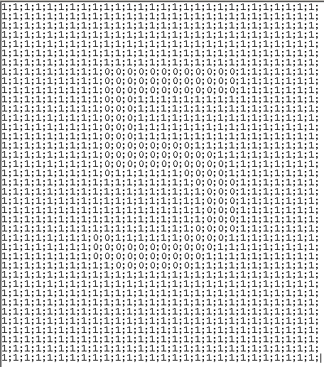 Составление бинарной матрицы производится по алгоритму нахождения K-среднего. Белому пикселю ставится в соответствие единица, а черному пикселю ноль. Строится бинарная матрица (см. рис. 3)