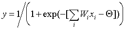 Как видно из описания шагов 2-3, обучение сводится к решению задачи оптимизации функционала ошибки градиентным методом. Вся «соль» обратного распространения ошибки состоит в том, что для ее оценки для нейронов скрытых слоев можно принять взвешенную сумму ошибок последующего слоя. Параметр h имеет смысл темпа обучения и выбирается достаточно малым для сходимости метода. О сходимости необходимо сделать несколько дополнительных замечаний. Во-первых, практика показывает что сходимость метода обратного распространения весьма медленная. Невысокий темп сходимости является «генетической болезнью» всех градиентных методов, так как локальное направление градиента отнюдь не совпадает с направлением к минимуму. Во-вторых, подстройка весов выполняется независимо для каждой пары образов обучающей выборки. При этом улучшение функционирования на некоторой заданной паре может, вообще говоря, приводить к ухудшению работы на предыдущих образах. В этом смысле, нет достоверных (кроме весьма обширной практики применения метода) гарантий сходимости. Исследования показывают, что для представления произвольного функционального отображения, задаваемого обучающей выборкой, достаточно всего два слоя нейронов. Однако на практике, в случае сложных функций, использование более чем одного скрытого слоя может давать экономию полного числа нейронов. В завершение изложения метода обратного распространения ошибок сделаем замечание относительно настройки порогов нейронов. Легко заметить, что порог нейрона может быть сделан эквивалентным дополнительному весу, соединенному с фиктивным входом, равным -1. Действительно, выбирая W0= , x0=-1 и начиная суммирование с нуля, можно рассматривать нейрон с нулевым порогом и одним дополнительным входом:
