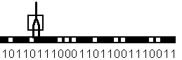Сигмоидальная функция обладает избирательной чувствительностью к сигналам разной интенсивности, что соответствует биологическим данным. Наибольшая чувствительность наблюдается вблизи порога, где малые изменения сигнала net приводят к ощутимым изменениям выхода. Напротив, к вариациям сигнала в областях значительно выше или ниже порогового уровня сигмоидальная функция не чувствительна, так как ее производная при больших и малых аргументах стремится к нулю. В последнее время также рассматриваются математические модели формальных нейронов, учитывающие нелинейные корреляции между входами. Для нейронов Маккалока и Питтса предложены электротехнические аналоги, позволяющие проводить прямое аппаратное моделирование. Обучение нейрона детектированию границы «черное-белое». Способность формального нейрона к обучению проявляется в возможности изменения значений вектора весов W, соответствующей пластичности синапсов биологических нейронов. Рассмотрим обучение формального нейрона на примере простейшей задачи детектирования границы. Пусть имеется образ, составленный из одномерной цепочки черных и белых клеток. Зачерненные клетки соответствуют единичному сигналу, а белые клетки - нулевому. Сигнал на входах формального нейрона устанавливается равным значениям пар примыкающих клеток рассматриваемого образа. Нейрон обучается всякий раз возбуждаться и выдавать единичный выходной сигнал, если его первый вход (на рис. 6.4. - левый) соединен с белой клеткой, а второй (правый) - с черной. Таким образом, нейрон должет служить детектором границы перехода от светлого к темному тону образа.  Рис. 6.4. Формальный нейрон с двумя входами, занятый обработкой образа в виде одномерной цепочки черных и белых клеток.