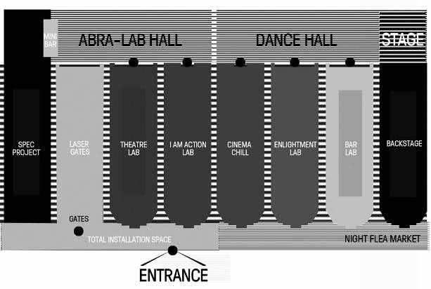 Лаборатории AbraLive - это масштабный эксперимент, на подготовку каждой из сессий выделяется всего 3 недели. За этот краткий срок артисты разных поколений и художественных направлений – музыканты, архитекторы, художники, поэты, актеры, режиссеры, хореографы – формируются в творческие группы и реализуют свои проекты, превращая пространство Большого Винохранилища Центра современного искусства ВИНЗАВОД в интерактивную медиа-активированную среду.