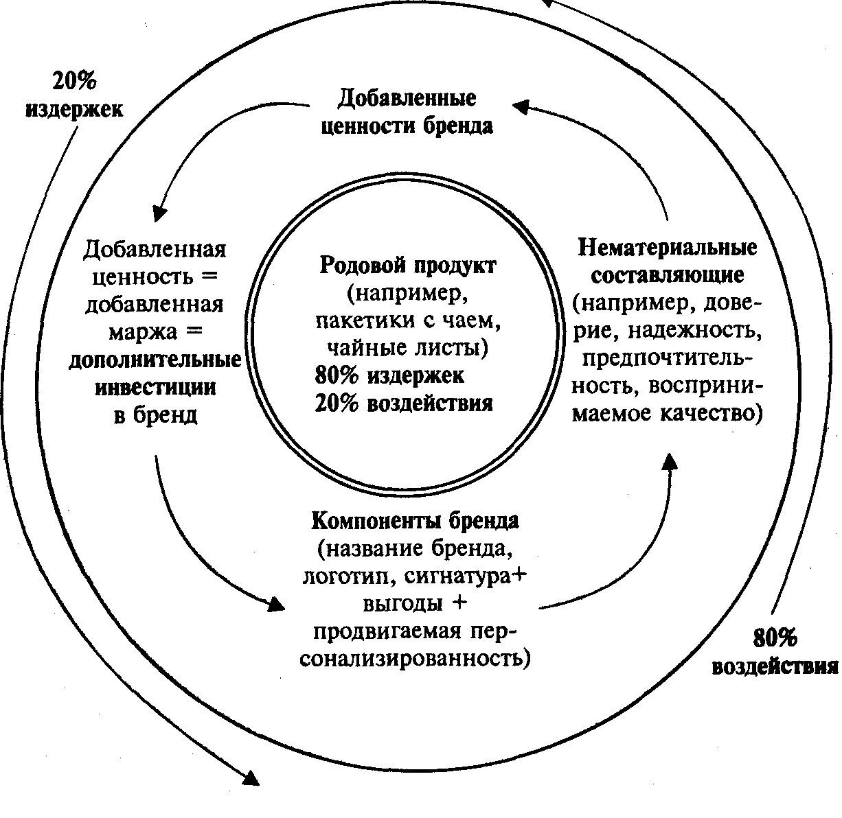Рис. 11.2. Концепция добавленной ценности (говорит о том, что относительно невысокие дополнительные издержки на бренд могут обеспечить гораздо более высокое воздействие на потребителя)