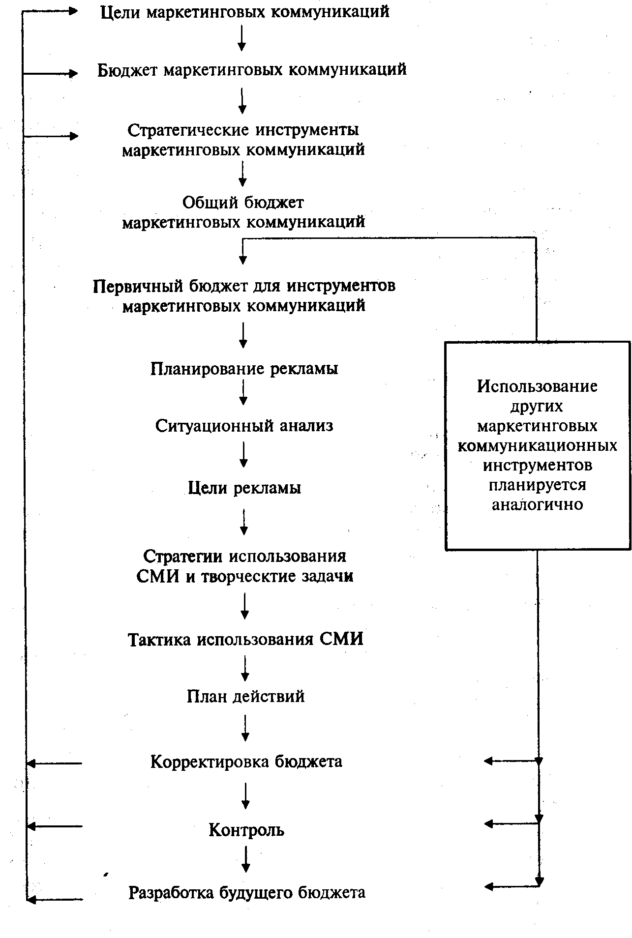 На рис. 6.4 указанный процесс представлен еще с большими подробностями, теперь в него также введено основное ресурсное ограничение, касающееся денег (бюджет). На первый взгляд может показаться странным, что бюджет маркетинговых коммуникаций оценивается до того, как составляется подробный операционный план. Однако такой подход отражает фактическое положение дел в большинстве крупных и небольших компаний. Небольшие компании часто тратят все, что они могут позволить, а это, как правило, относительно незначительные суммы.