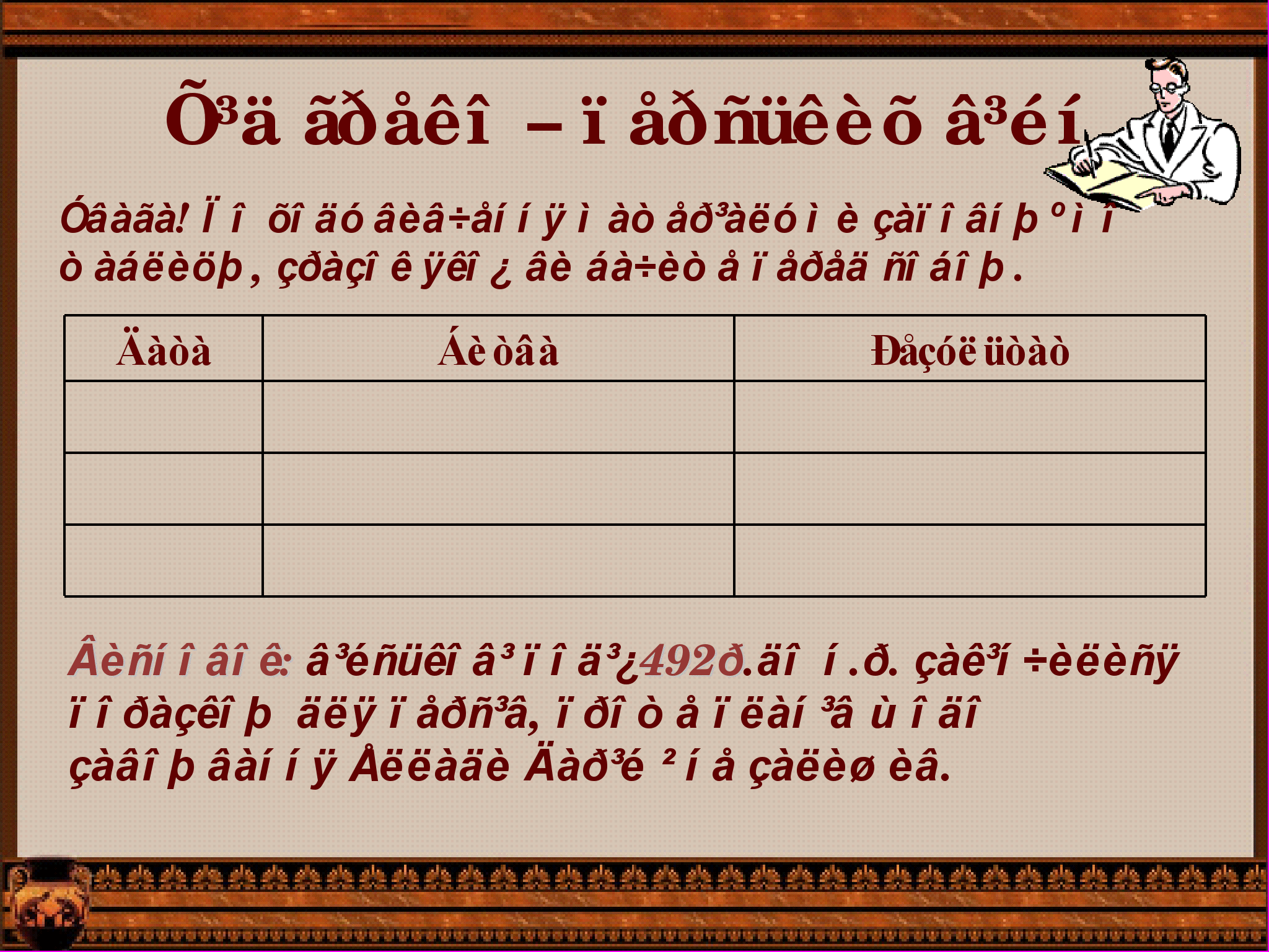 Хронологічна задача. Марафонська битва відбулася 490р.до н.е. минуло 10 років. І перси знову розпочали свій похід проти Греції. У якому це році сталося? ( - 480 г. до н.э.).