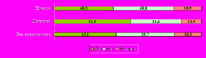 Распределение ответов юношей и девушек на вопрос «Способны ли Вы порвать