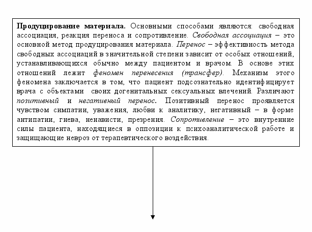 - Перенести продукции пациента в их бессознательное содержание, то есть установить связь мыслей, фантазий, чувств, поведения пациента с их бессознательными «предками».