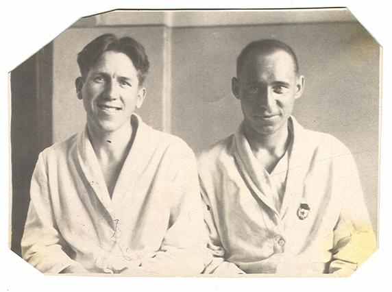 Передо мной старая фотография, на которой изображен мой дедушка Булдаков Александр Агапович со своим фронтовым другом. Дедушка – справа с гвардейским значком. Этот снимок был сделан в конце марта 1943 года в эвакогоспитале №2486 после того, как дедушку тяжело ранило в бою за Родину.