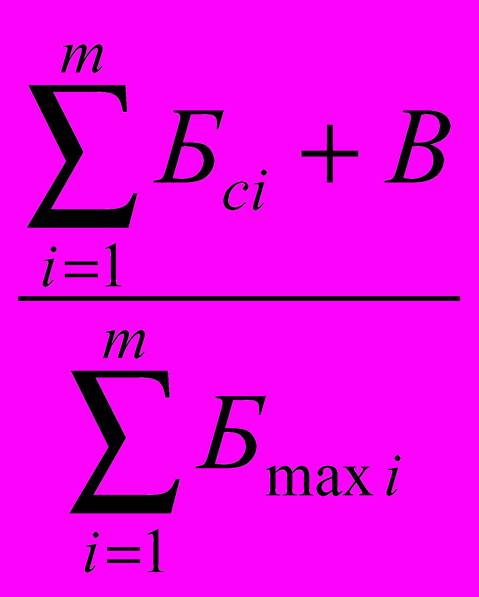 Бmaxi – максимально возможное количество баллов по i-му предмету (хирургической, ортопедической, терапевтической стоматологии)