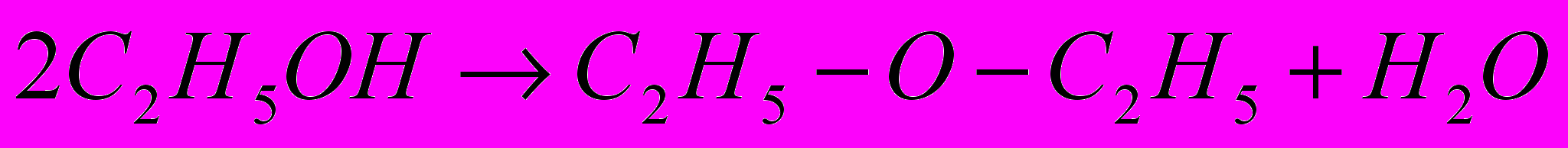 В присутствии концентрированной серной кислоты многие спирты подвергаются дегидратации – теряют воду. При температуре выше 160 °С в результате дегидратации этилового спирта образуется этилен, а при более низкой температуре (140 °С) – диэтиловый (серный) эфир: