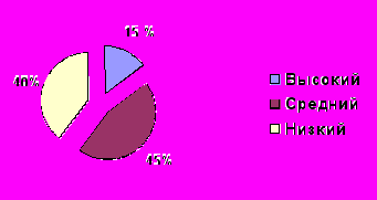 Подводя итоги экспериментального исследования, приведем результаты, демонстрирующие уровень познавательной активности учащихся экспериментального класса. На данном этапе эксперимента низкий уровень познавательного интереса отмечен у 15 % учащихся, средний – у 60 %, высокий – у 25%.