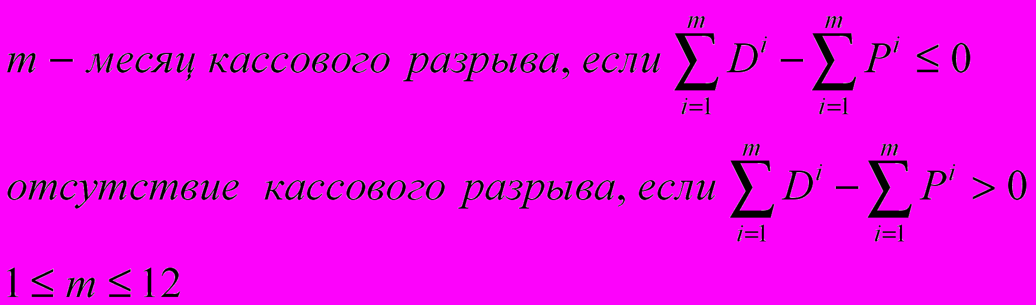 m − месяц, в котором ожидается возникновение кассового разрыва.