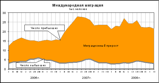 Рис. 1 Международная миграция по месяцам 2006-2008 гг.