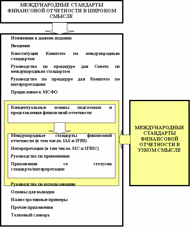 - Международные стандарты финансовой отчетности в широком смысле – вся совокупность документов, которые разрабатываются Комитетом по международным стандартам (IASCF).