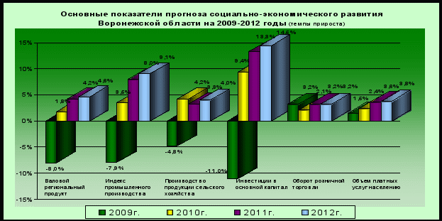 Динамика отдельных показателей прогноза социально-экономического развития Воронежской области на 2009-2012 годы представлена на диаграмме: