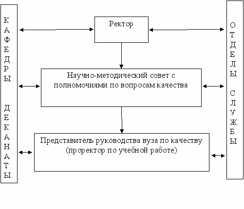 Систему управления качеством института возглавляет ректор, осуществляющий, прежде всего, функции контроля и координации деятельности всех остальных участников.
