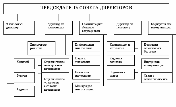 Стремление оказывать информационную поддержку проявляется в появлении подразделений, реализующих единую информационную политику ТНК; стремление реализовывать инновационную поддержку и стратегический маркетинг – к выделению функции стратегического планирования и развития новых бизнесов; а стремление обеспечить кадровый ресурс и кадровую независимость корпорации – к появлению на уровне Правления ответственных за подготовку кадров и реализацию кадровой политики структур. На рис. 3.1 для примера показана структура Правления корпорации «LTU».
