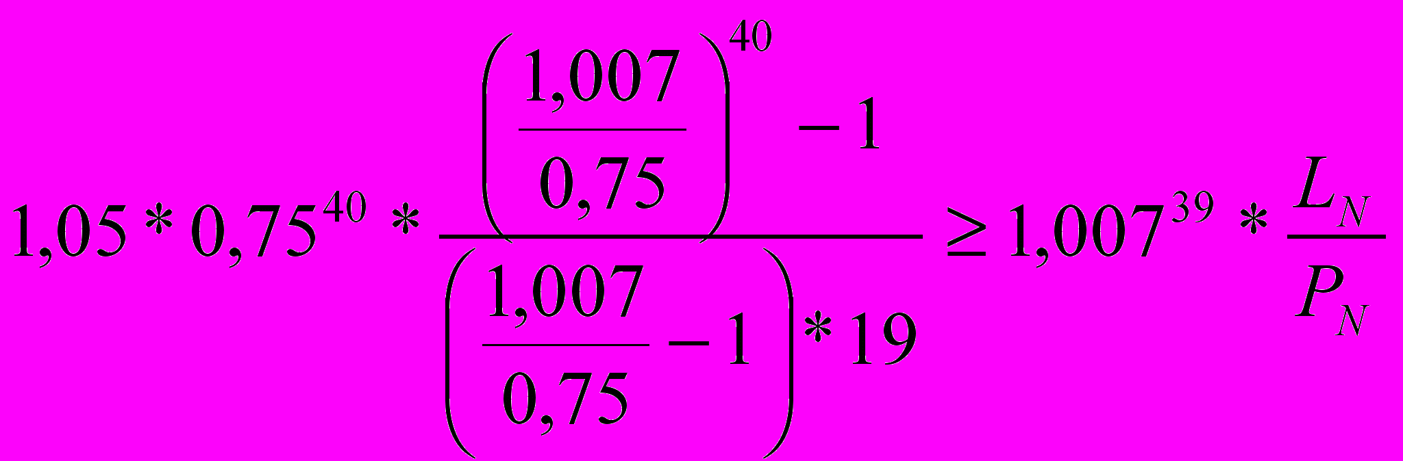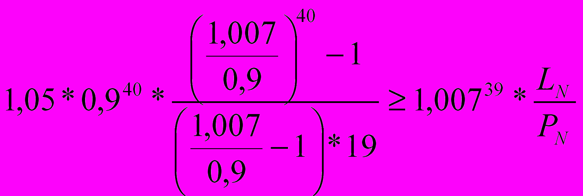 . Тогда s = 1,007; d = 19; годовой темп роста ВВП примем равным 1,05, и неравенство (11) приобретет следующий вид: