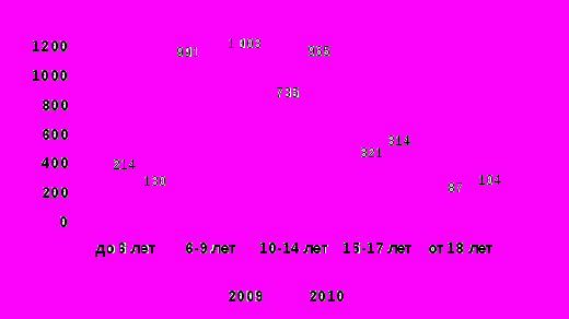 Рисунок 1. Возрастной состав обучающихся в 2009, 2010 г.г.