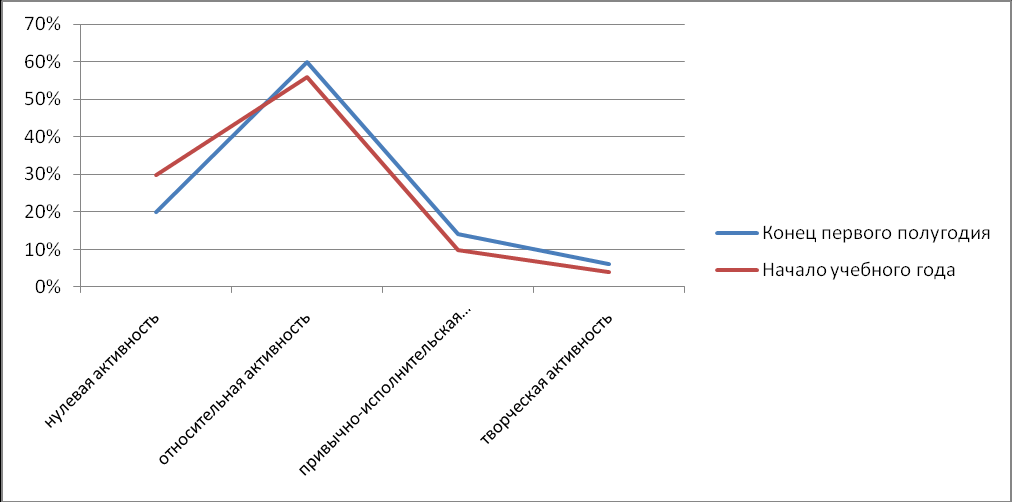 | | | Нулевая активностьУчащийся пассивен, слабо реагирует на требования учителя, не проявляет желания к самостоятельной работе, предпочитает режим давления со стороны педагога. |