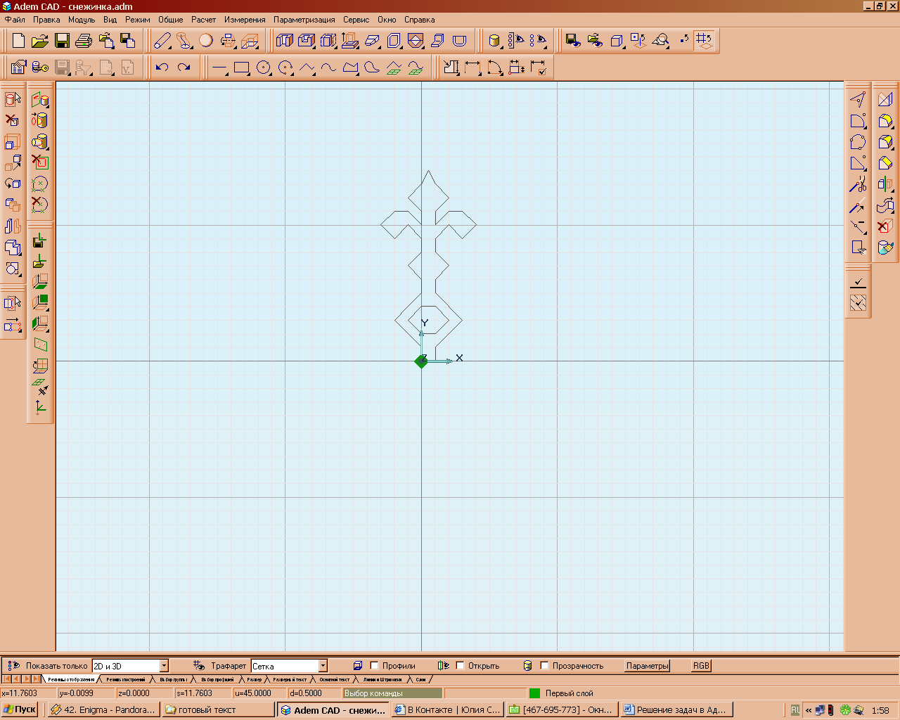 Задание 5: Создать объемную модель снежинки по уже готовому чертежу, используя инструменты 3 D моделирования (рис.15-18).
