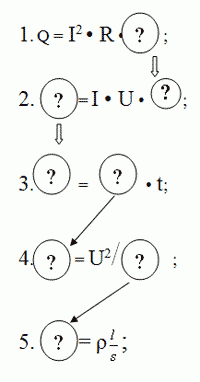 Учитель: настало время проверить знание формул и теоретического материала по пройденной теме «Электричество», а поможет нам в этом конкурс «Физическая эстафета». Этот конкурс проводится в два этапа. Цель конкурса — проверить знание учащимися формул.
