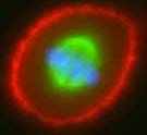 | 1. | Ранняя профаза В клетке (плазматическая мембрана на фотографии имеет красный цвет) исчезает ядерная оболочка, нити микротрубочек (зеленые) начинают формировать митотический аппарат (веретено деления), хроматин (комплекс ДНК и белков-гистонов, на фотографии - голубые пятна) начинает конденсироваться и, спирализуясь, превращаться в хромосомы. | ![]() | |||||