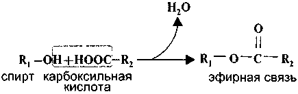 В этой связи важно заметить, что основные реакции биосинтеза, идущие с образованием связи между мономерами, напротив, сопровождаются отщеплением воды. Например, образование эфирной связи: