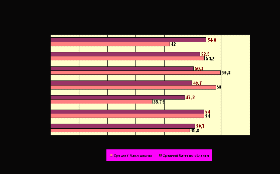 Результаты ЕГЭ в сравнении с областным средним баллом