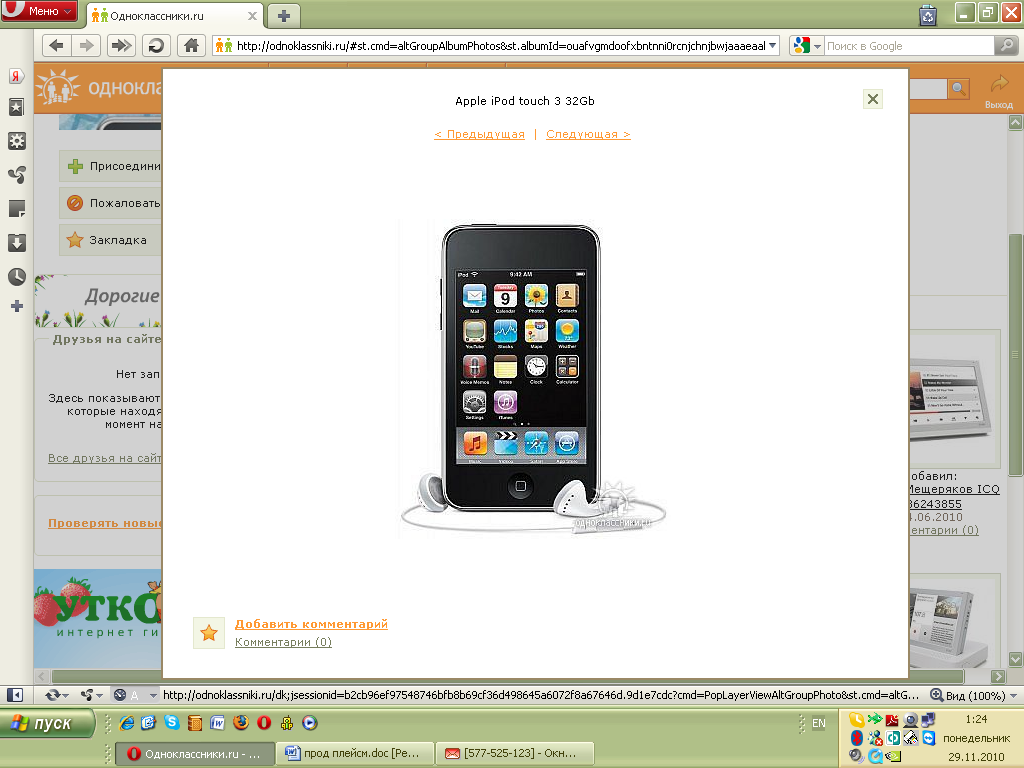 а этот раз продвижение iPod Touch пришло в группу под названием «Музыка и все, что с ней связано». Группа, где обсуждаются музыкальные новинки или всегда актуальная классика, на мой взгляд, является идеальным местом для того, чтобы восторгаться качеством, удобством и комфортом при использовании плеера. В обсуждениях группы опять же можно не раз натолкнуться на такие высказывания одного молодого человека по профессии менеджер по продажам: «Ребяяяяят, я тут купил себе наконец-то iPod Touch!! Так классно!! Это устройство оживило мою музыкальную жизнь)) Еще никогда не держал в руках более удобного плеера. И красивого)) Всем советую!! Посмотрите фоточку – он божественен!» Или: «А я вот, когда шел по улице в наушниках, чуть не стал жертвой ДТП. Мало того, что Muse всегда меня завораживают своей музыкой, но звук в айпод тач просто неподражаем. Как будто живой оркестр играет. Это ж надо было додуматься изобрести такое гениальное устройство. Эппл молодцы. Я их ярый поклонник!!»К
