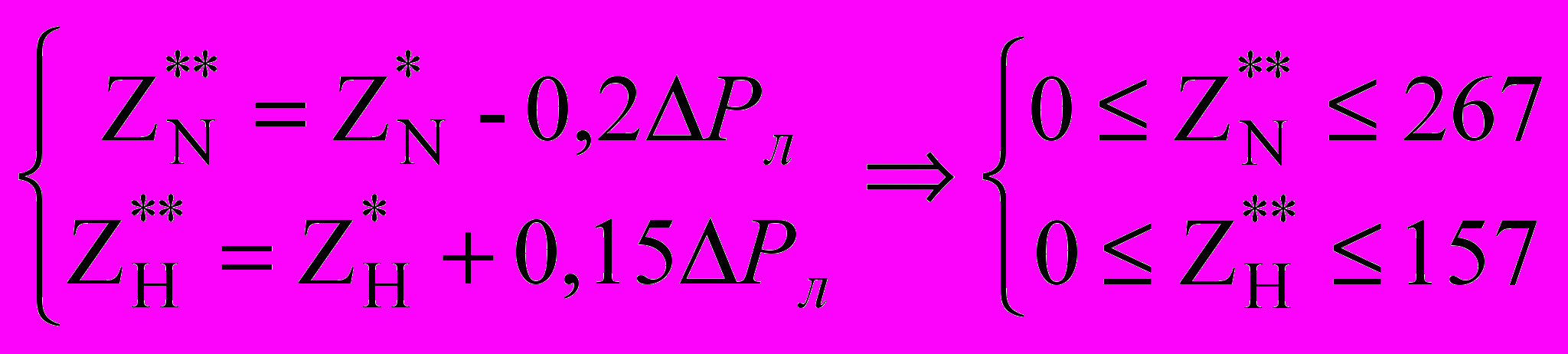Результати завершальної ітерації комплексної оцінки ПРП території в табл. 3.6 свідчать про те, що резерв відсутній по рекреаційних землях (N=200 га) і людських рекреаційних ресурсах (Н=400 осіб). Розглянемо зміну площі рекреаційних земель. Змінимо N на N (згідно з формулою 2.6). При цьому обмеження по рекреаційних землях набуде вигляду: