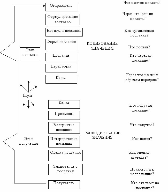 Помехи (барьеры) - под коммуникативным барьером обычно понимаются незапланированные вмешательства среды или искажения, в результате которых к получателю поступает обращение, отличное от того, что послал отправитель. Часто употребляется и следующее определение — все то, что препятствует эффективному общению и блокирует его. Следовательно, барьеры - это невозможность достижения взаимного понимания между участниками общения. Являясь одной из причин появления коммуникативных затруднений, обусловлена отсутствием следующих факторов: адекватного образа партнера, адекватной ориентировки в собеседнике, способности принятия роли партнера по общению, способности моделирования внутреннего мира личности на основе внешних признаков, понимания мотивов поведения партнера, психологической совместимости коммуникантов, общности ситуационного контекста.