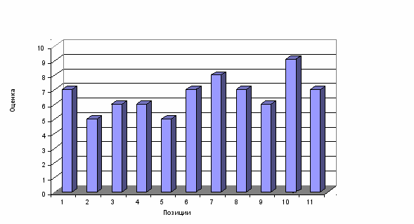 Эффективность воспитательной работы в вузе невозможно в полной мере оценить лишь с позиций созданных для ее реализации условий. В значительной мере ее качество определяют сами студенты, открыто выражающие свое мнение и оценивающие весь спектр проводимых мероприятий. С этой целью в конце отчетного пятилетнего периода в академии осуществлено анкетирование студентов о состоянии воспитательной работые. Руководствуясь рекомендациями и методическими материалами Росаккредагенства, провели письменный опрос 522 студентов II–VI курсов. Обработка полученных материалов осуществлялась при помощи компьютерной программы. Одиннадцать направлений воспитательной деятельности оценивались студентами по 10-балльной шкале (1 – организация и проведение внеучебной работы в образовательном учреждении в целом; 2 – влияние мнения студентов на составление плана организации и проведения внеучебной работы; 3 – справедливость системы поощрения студентов за активное участие во внеучебной деятельности; 4 – специальная профилактическая работа; 5 – работа социально-психологической службы; 6 – готовность студентов к жизни и труду в современных условиях; 7 – организация и проведение внеучебной работы; 8 – материально-техническая база, используемая во внеучебной работе; 9 – работа студенческих общественных организаций; 10 – работа куратора; 11 – уровень информационного обеспечения организации и проведения внеучебной работы).