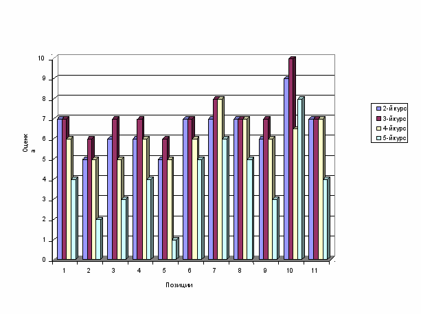 При всей условности и формальности подобная обратная связь позволяет определить слабые места и усилить работу в необходимых направлениях, особенно применительно к студентам того или иного курса (рис. 7).