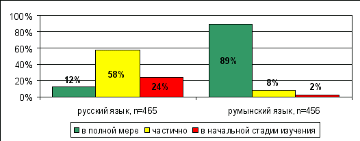 Подавляющее большинство опрошенных в полной мере (80%) или отчасти (19%) владеют румынским языком.